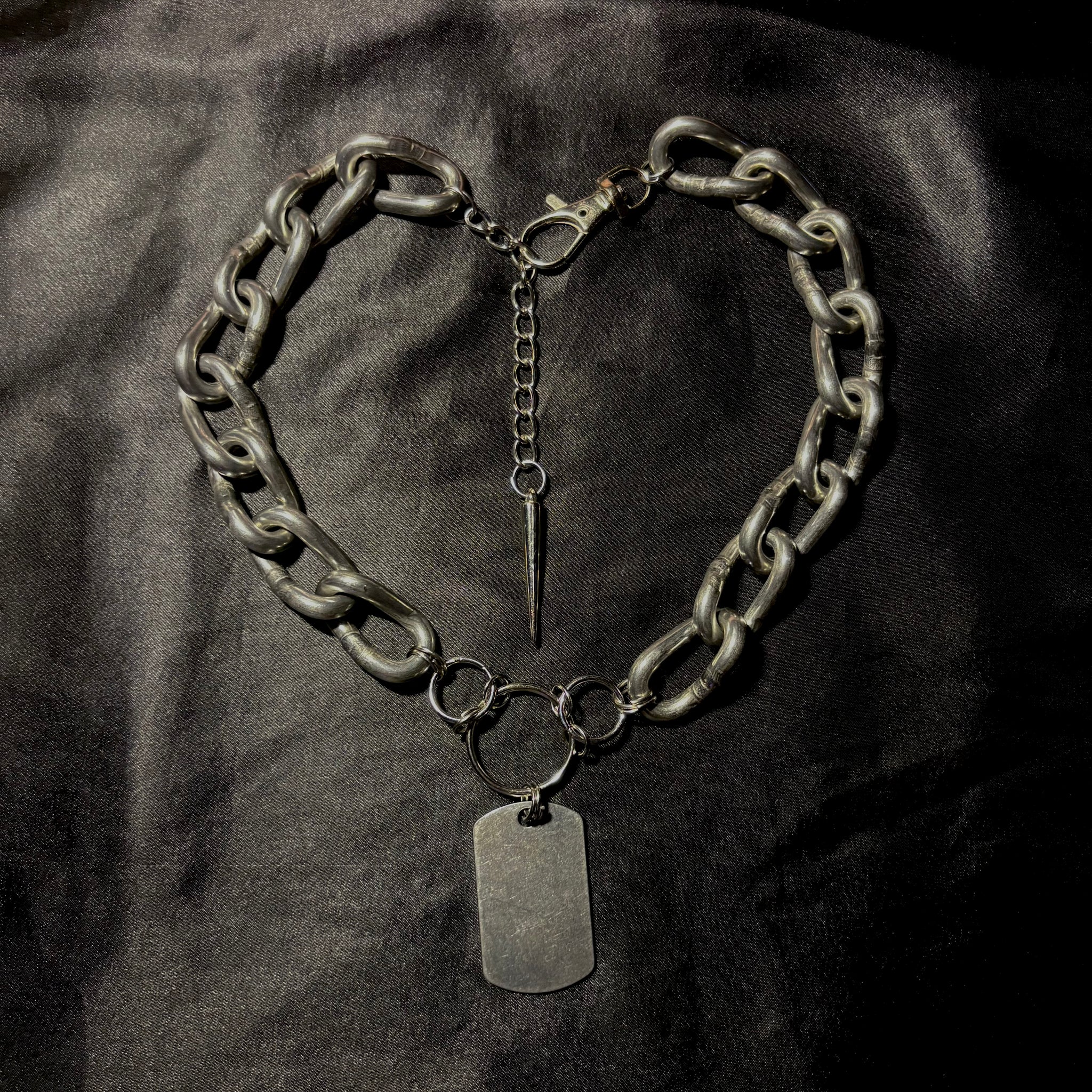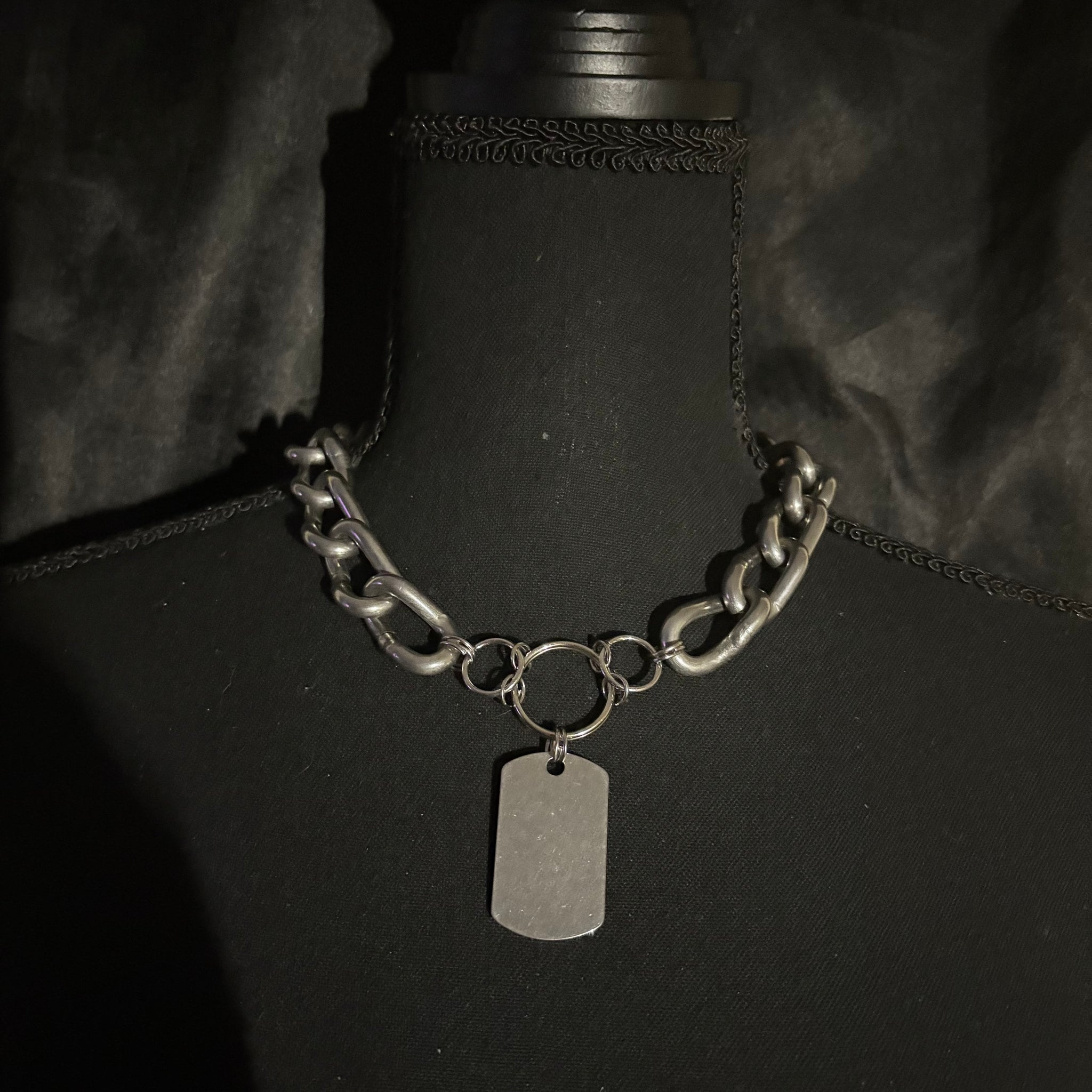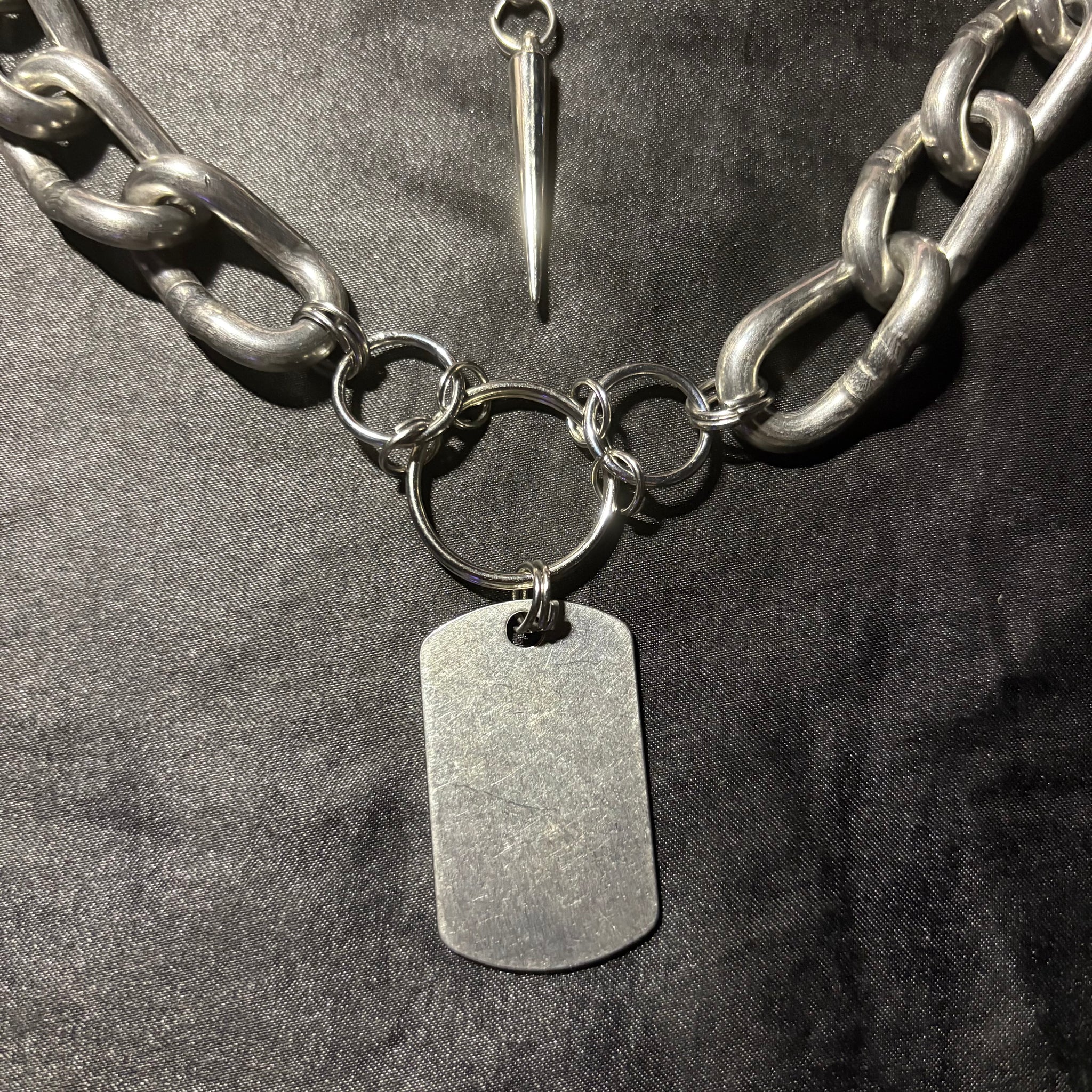 This is a 1 of 1 handmade necklace made of stainless steel chain, jump rings, and extender. The dog tag charm is a metal alloy.
